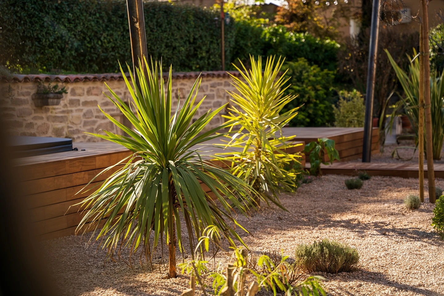 Pour un jardin résistant aux chaleurs du Var, le choix des végétaux est déterminant. Les espèces méditerranéennes, naturellement adaptées au climat local, associées à l'installation d'un arrosage automatique dès la création, assurent une belle reprise des plantations et une longévité maximale, sans contrainte d'entretien quotidien.